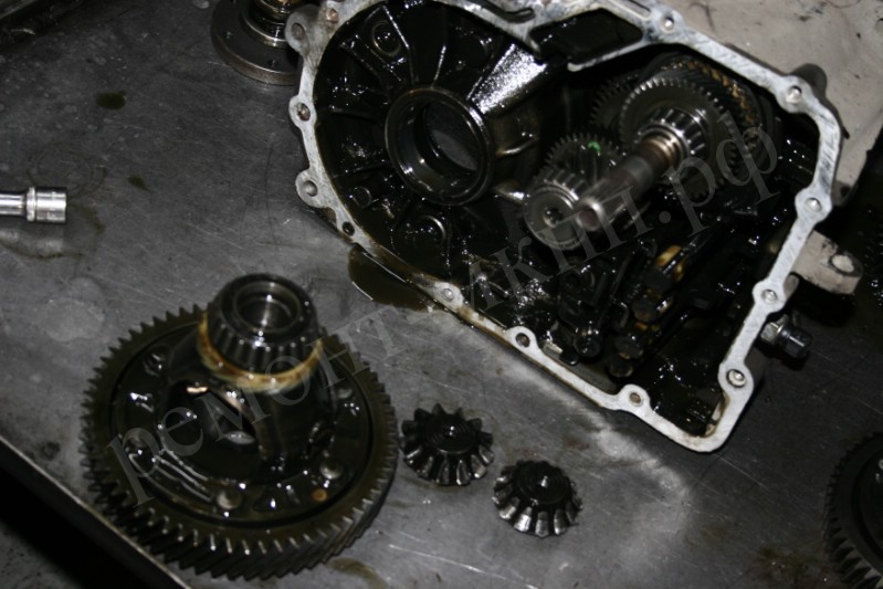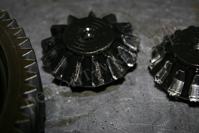 Водитель автомобиля Фольксваген Поло 1.4 2002г.в. застрял в сугробе и был вынужден буксовать пока не услышал хруст из МКПП и автомобиль перестал реагировать на нажатие педали газа. После разбора коробки передач обнаружено полное разрушение сателлитной группы дифференциала.
